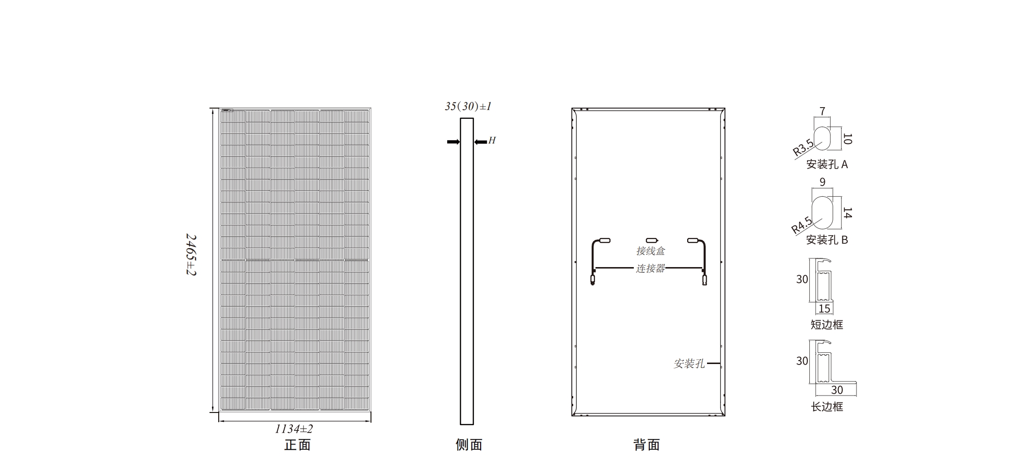 STC:AM1.5 1000W/m225℃ | NOCT:AM1.5 800W/m2 20℃ 1m/s | 最大功率测试公差±3% |